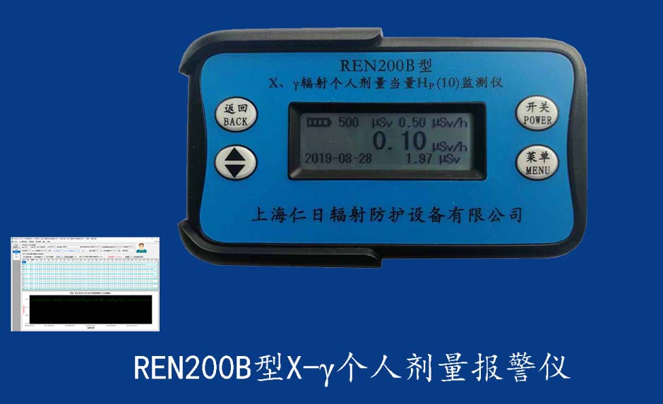 REN210型X、γ、中子個人輻射報警儀內置SiPM和鋰玻璃晶體組成中子探測器儀器,采用反照率方式探測中子射線,同時也能探測X、γ射線。因此它可同事監檢測X、γ、中子三種射線。能顯示工作場所的劑量當量率和累積劑量,更換電池時,日期及累積數據能永久保存?蛇x配RenRiPersonal個人劑量管理軟件,該軟件可存儲多個人的歷史數據,能記錄日累積、月累積、年累積、輻照時長、計算平均劑量率、扣除或不扣除本底輻射,且以文字和圖譜的方式展現數據。廣泛應用于環保、化工、水泥、煤礦、土木工程、石油、醫院、疾控、進出口商檢、核電、加速器、機場、中子源庫和其他安檢、邊境控制海關檢測等領域中的工作人員進行個人安全防護